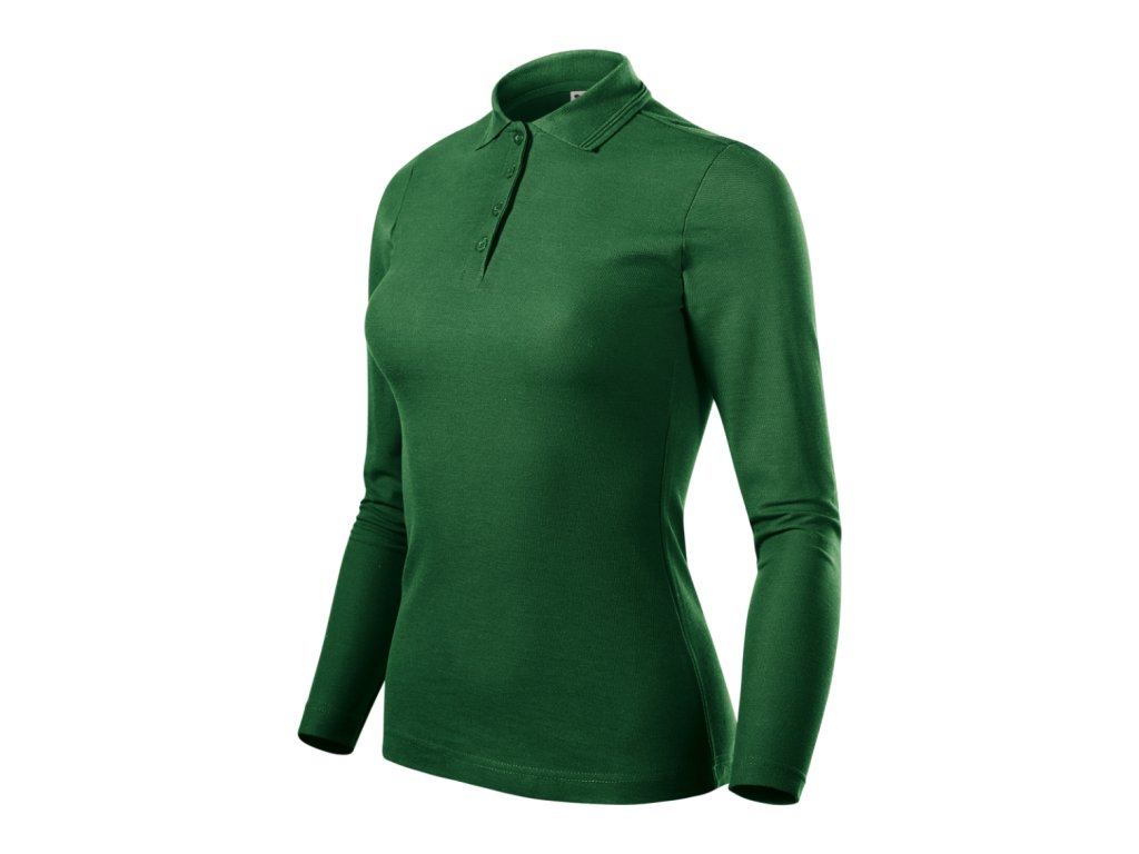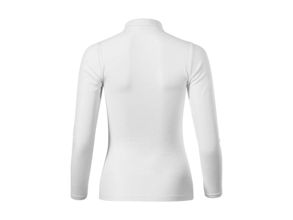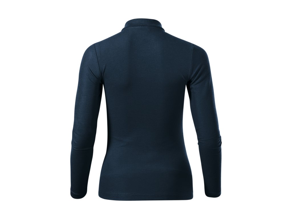 lehce vypasovaný střih s bočními švy, límeček s dvojitým reliéfním proužkem z žebrového úpletu 1:1, úzká léga s 4 knoflíčky v barvě materiálu, vnitřní průkrčník začištěn páskou z vrchového materiálu, zpevnění ramenních švů páskou, dlouhé rukávy