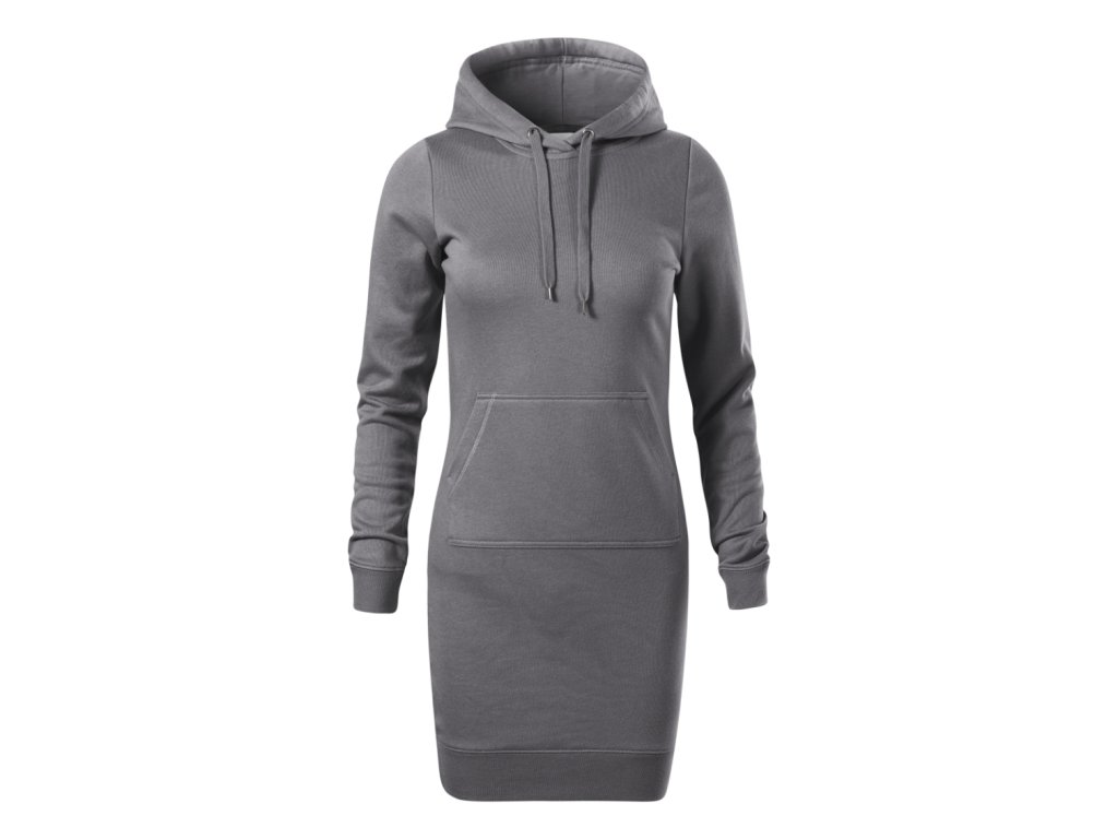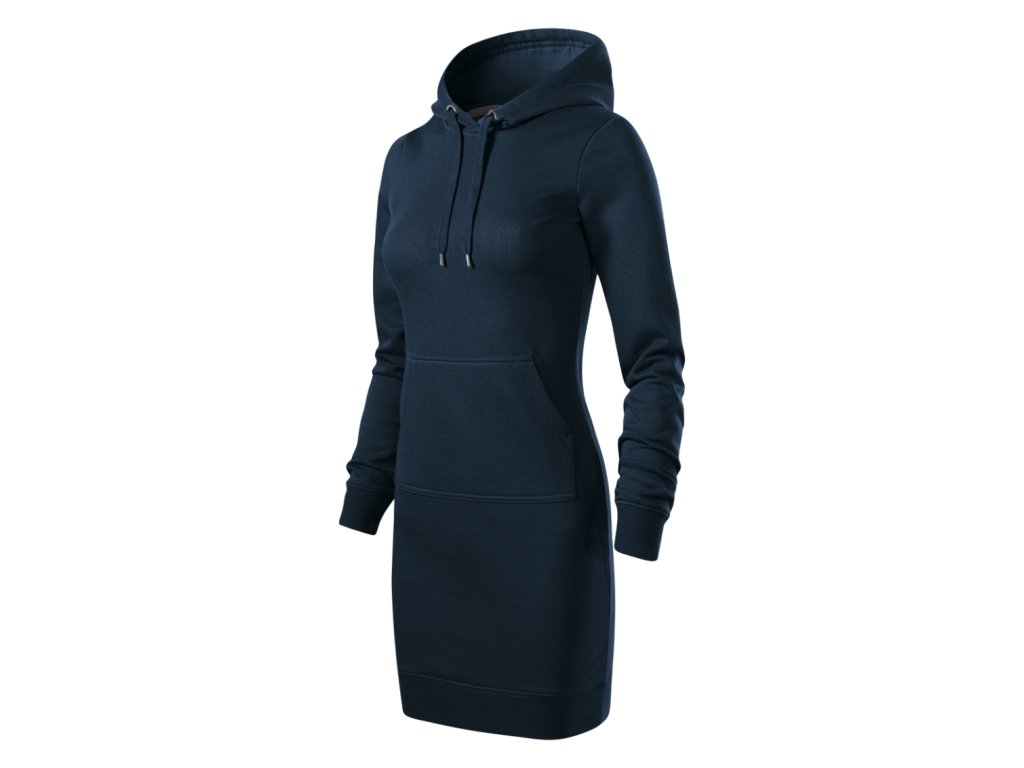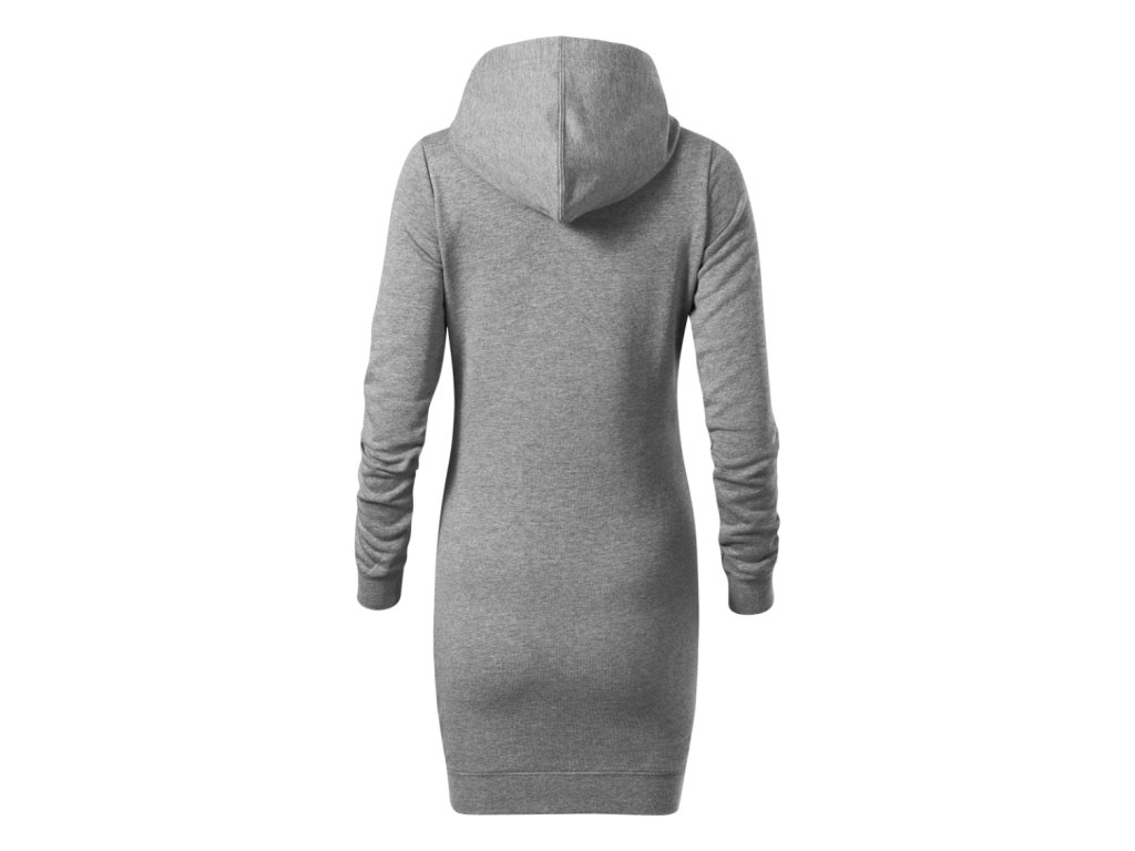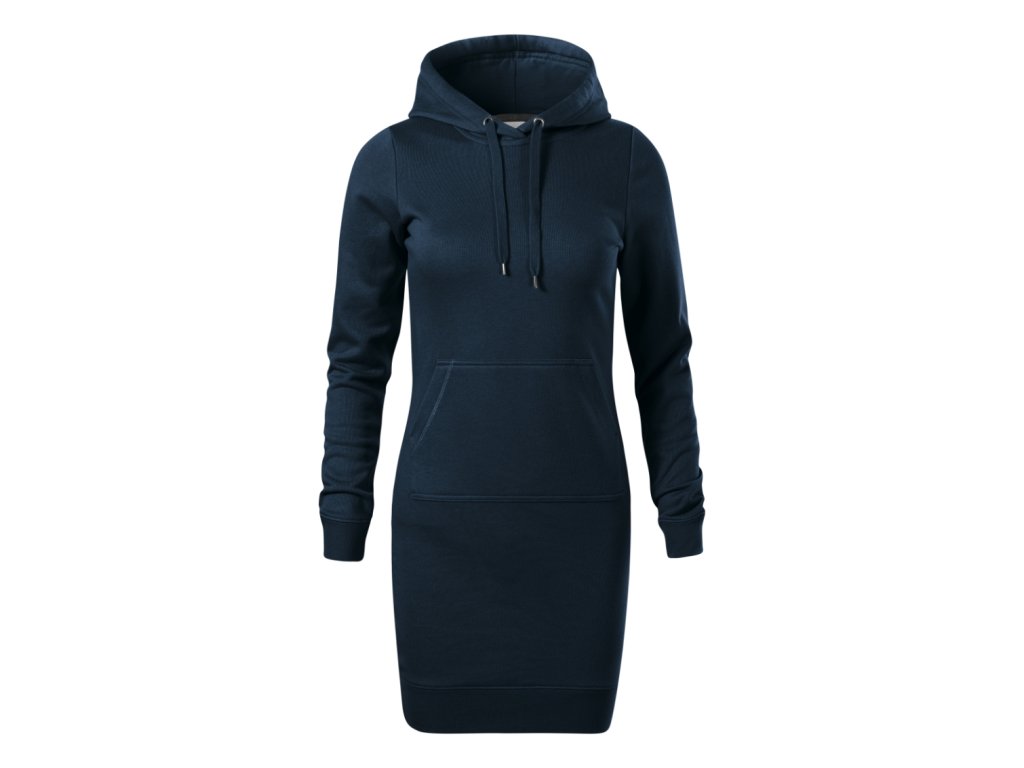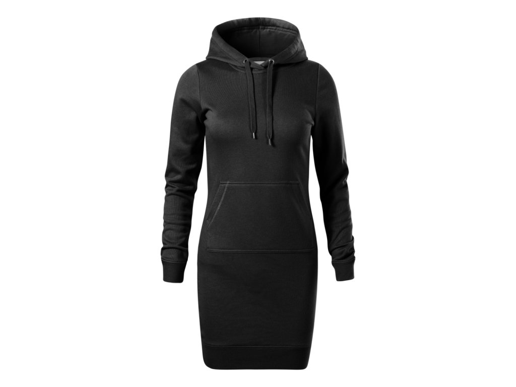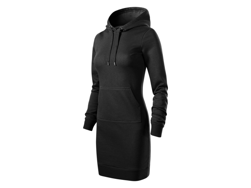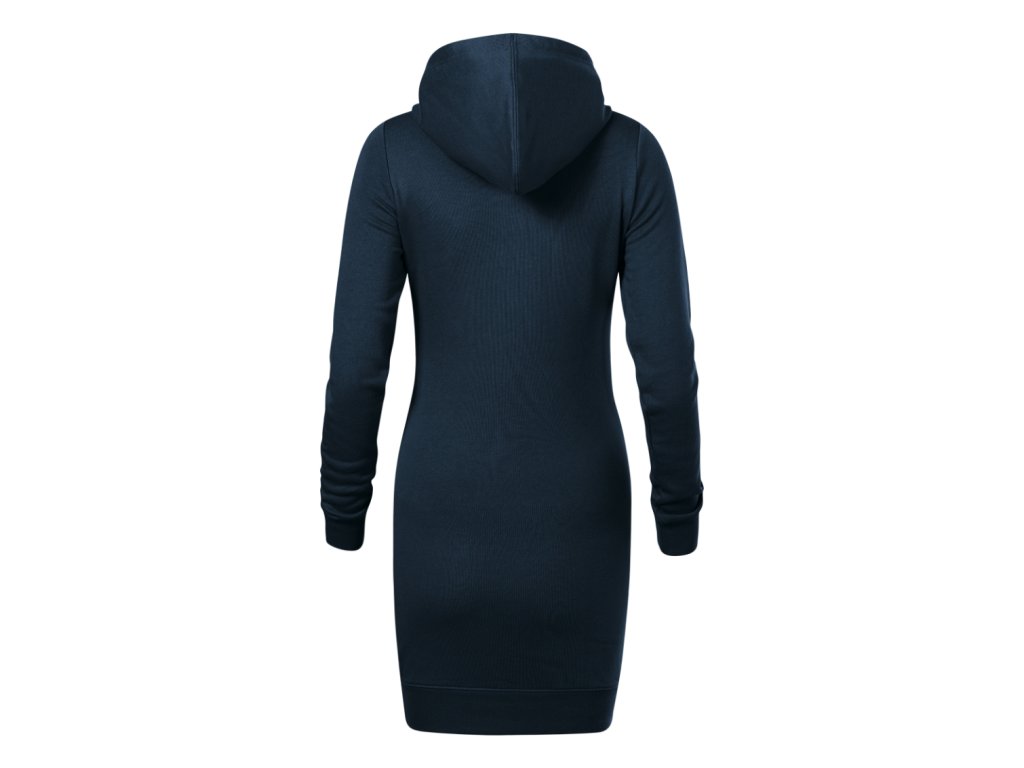 lehce vypasovaný střih s bočními švy, délka nad kolena, kapuce s podšívkou, na stažení šňůrkou, vnitřní část průkrčníku začištěna páskou v barvě 94, dolní lem a manžety rukávů z žebrového úpletu 1:1 s 5 % elastanu, nakládaná kapsa ve stylu klokanky, vnitřní strana nepočesaná