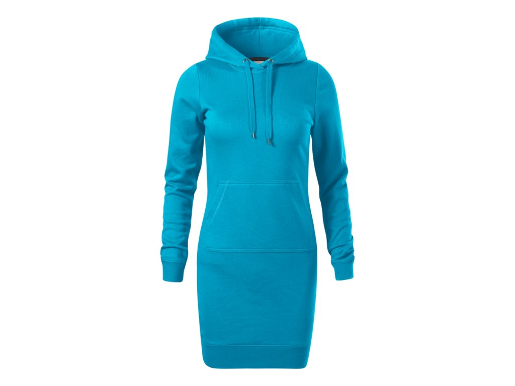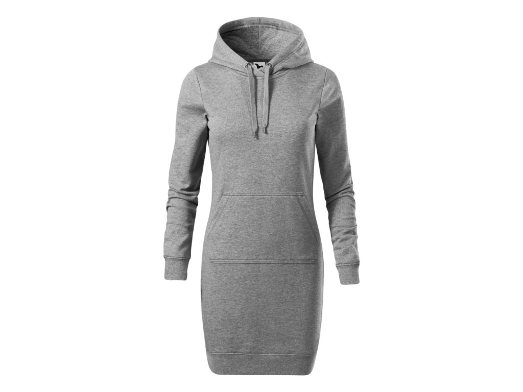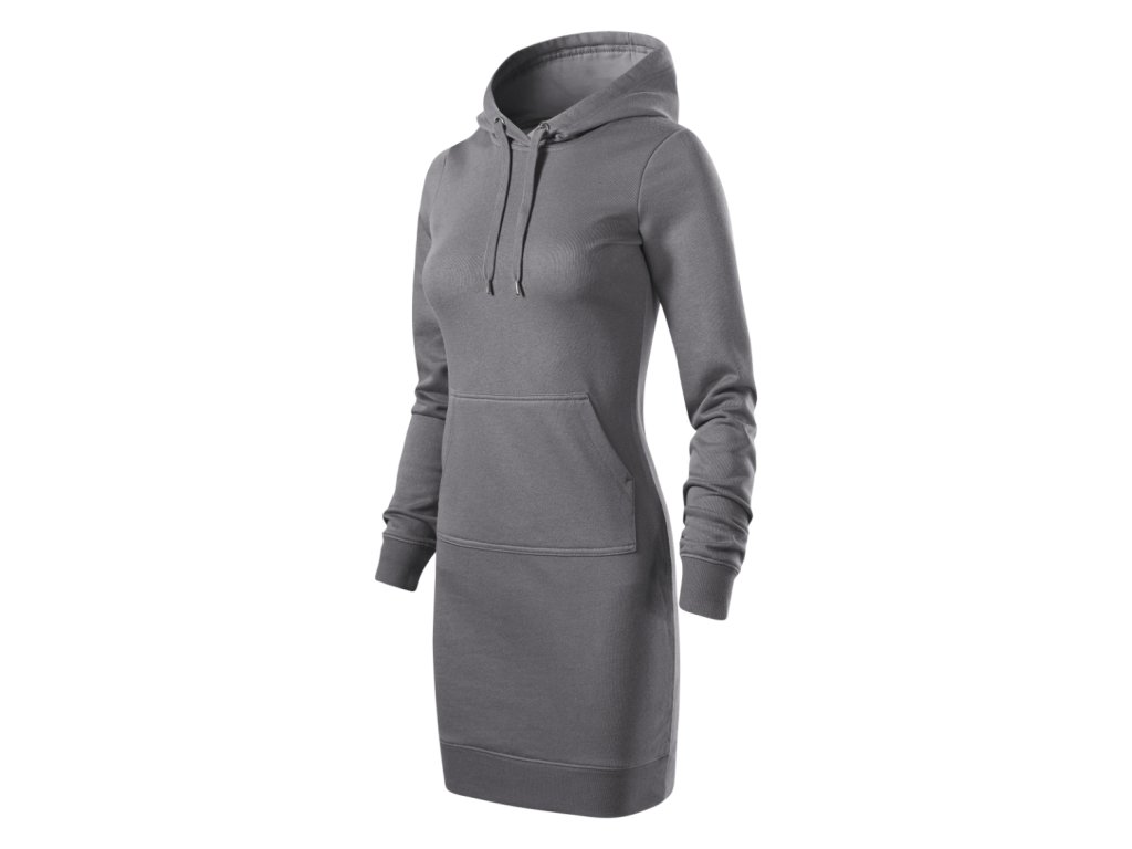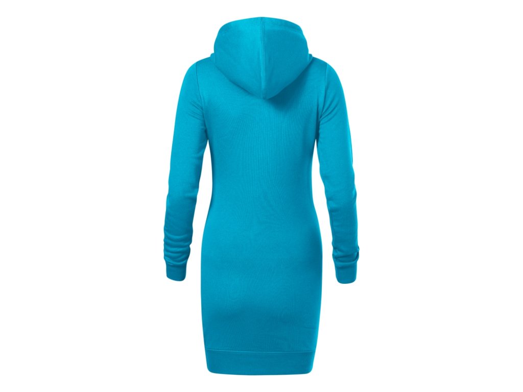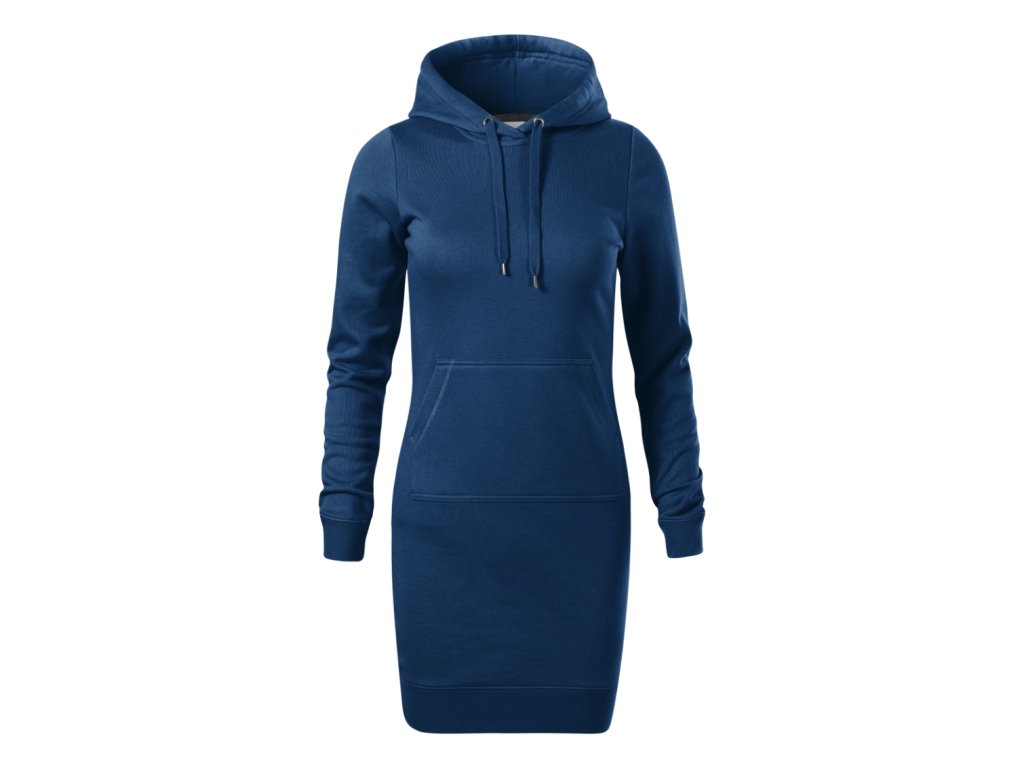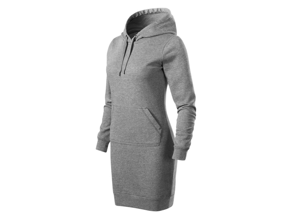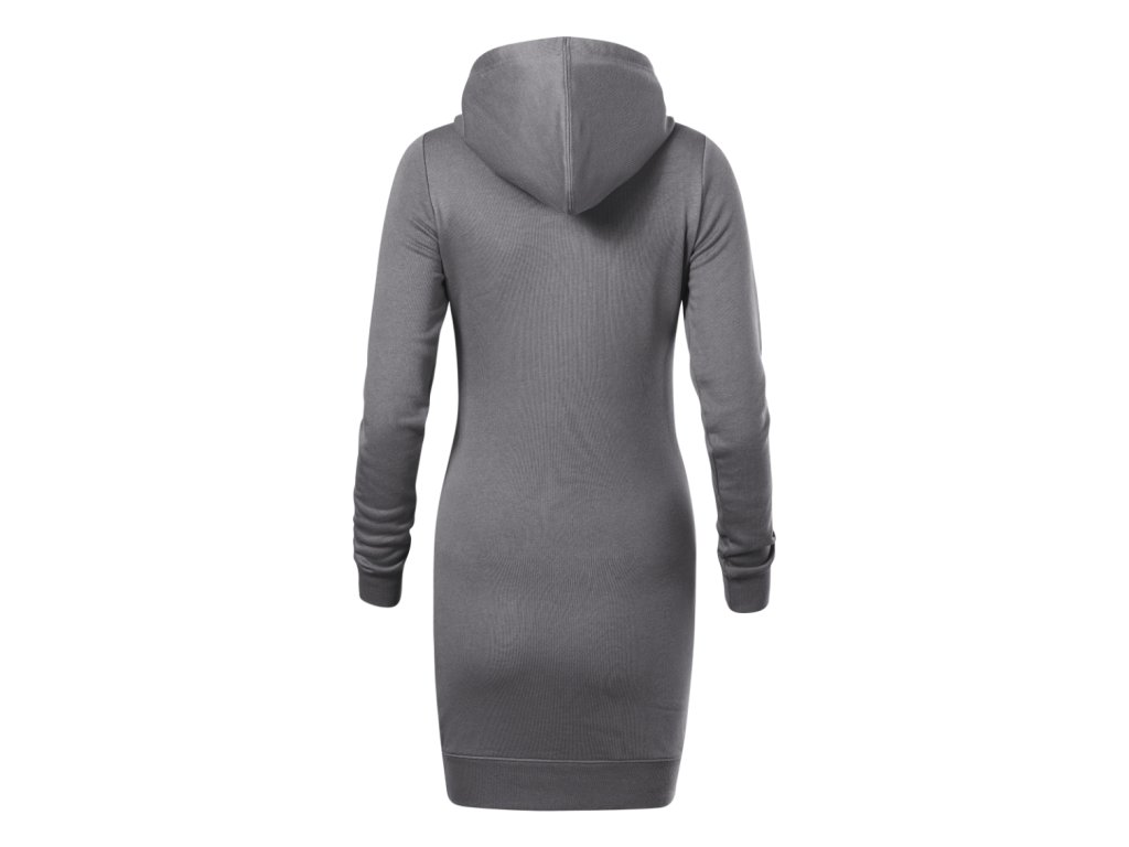 lehce vypasovaný střih s bočními švy, délka nad kolena, kapuce s podšívkou, na stažení šňůrkou, vnitřní část průkrčníku začištěna páskou v barvě 94, dolní lem a manžety rukávů z žebrového úpletu 1:1 s 5 % elastanu, nakládaná kapsa ve stylu klokanky, vnitřní strana nepočesaná