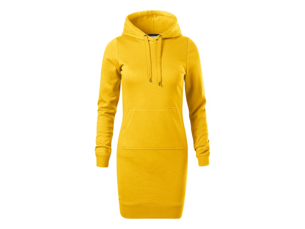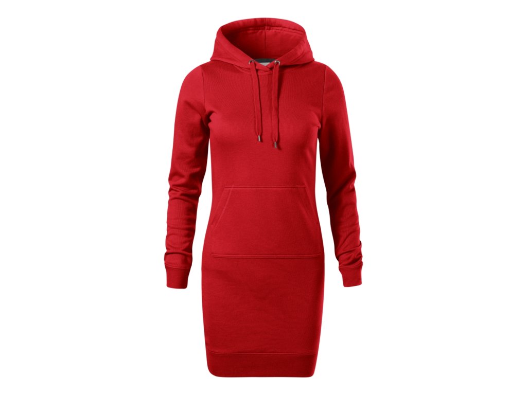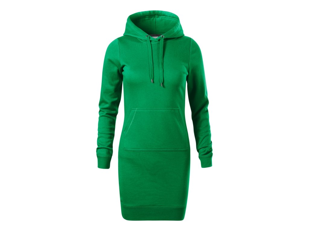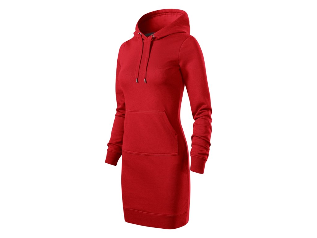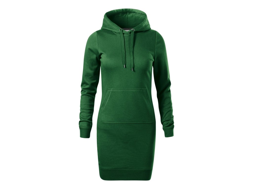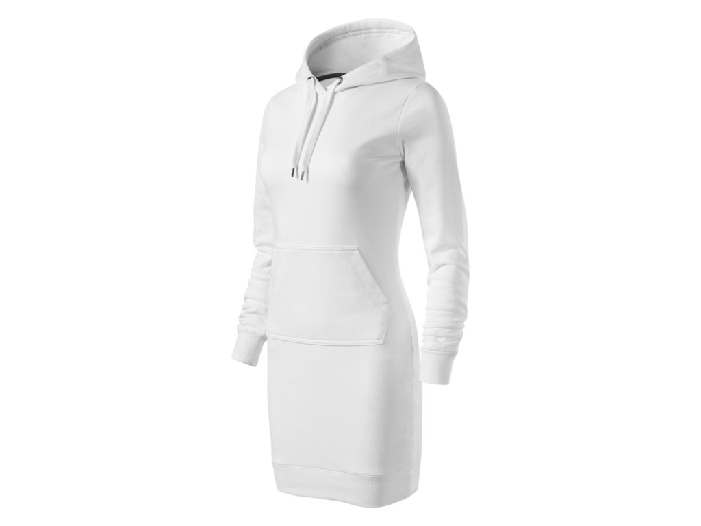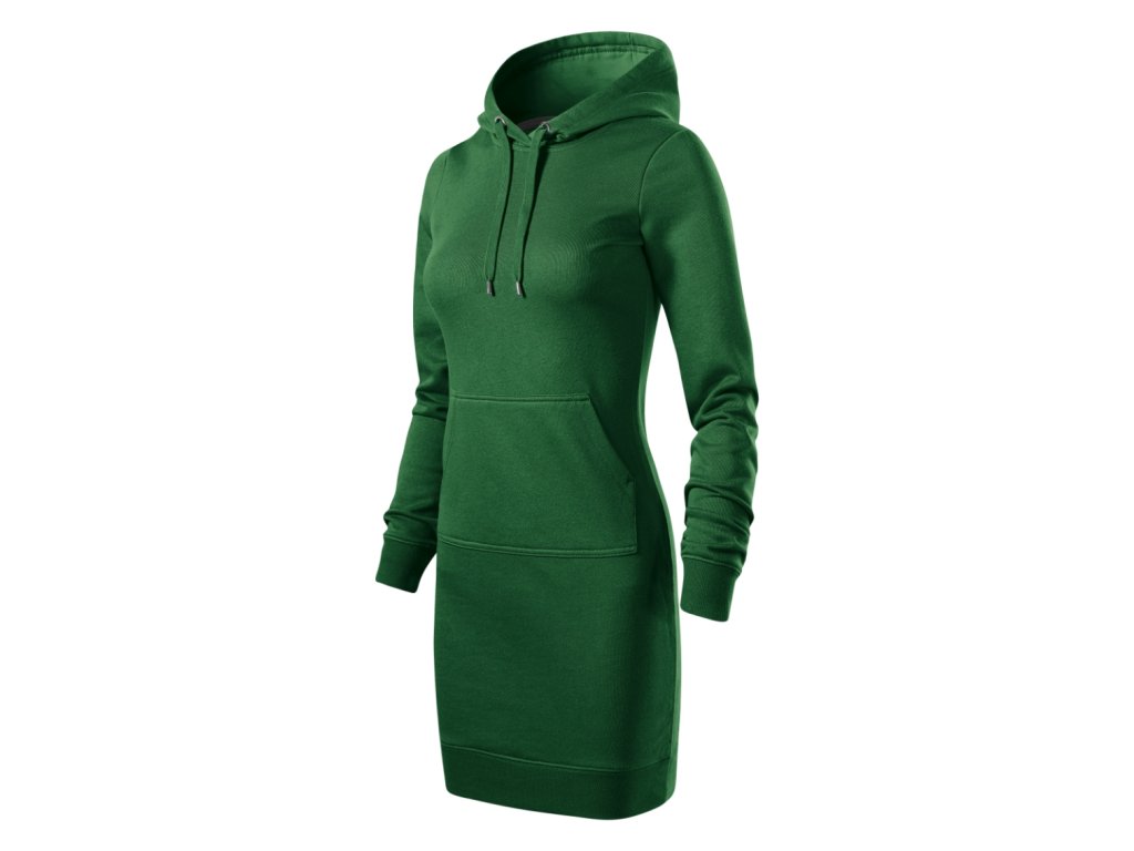 lehce vypasovaný střih s bočními švy, délka nad kolena, kapuce s podšívkou, na stažení šňůrkou, vnitřní část průkrčníku začištěna páskou v barvě 94, dolní lem a manžety rukávů z žebrového úpletu 1:1 s 5 % elastanu, nakládaná kapsa ve stylu klokanky, vnitřní strana nepočesaná