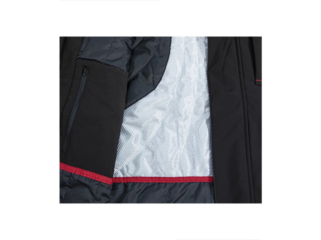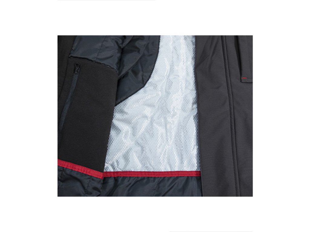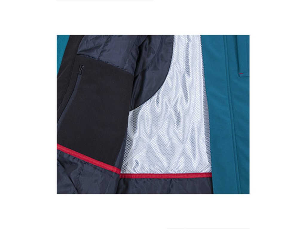 3vrstvý zateplený softshell s membránou, termo reflexní zóna na zadním dílu, celopropínací zip s krytkou brady a klopou, odnímatelná, nastavitelná kapuce s podšívkou, kapuce a dolní lem na stažení elastickou šňůrkou, lemy rukávů nastavitelné suchým zipem, kapsy s nepromokavým reverzním spirálovým zipem, nakládané náprsní kapsy na zip, vnitřní náprsní kapsa na zip, vstup pro branding v bočním švu podšívky, tvarovaný a mírně prodloužený zadní díl , kontrastní prvky, vnitřní fleece s antipilingovou úpravou