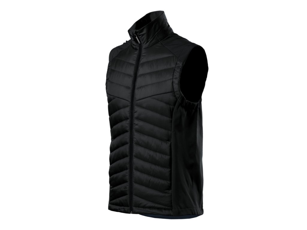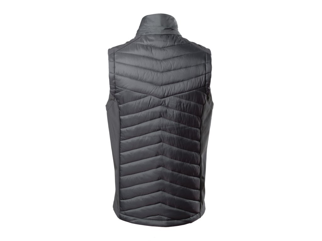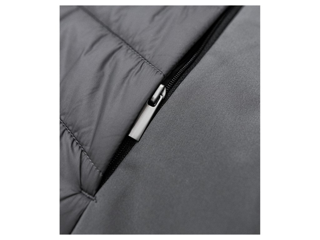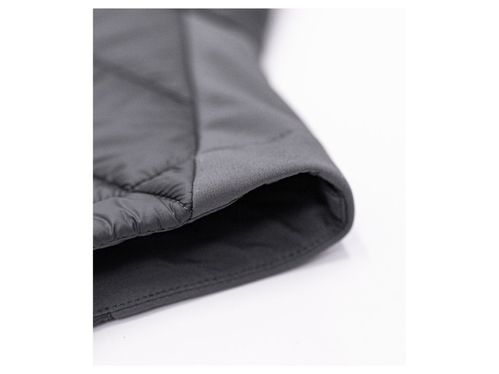 kombinace prošívaného a softshellového materiálu, rovný střih s bočními díly, celopropínací spirálový zip s krytkou brady, boční kapsy se spirálovým zipem, vnitřní náprsní kapsa na zip, tvarovaný a mírně prodloužený zadní díl , vstup pro branding v podšívce zadního dílu