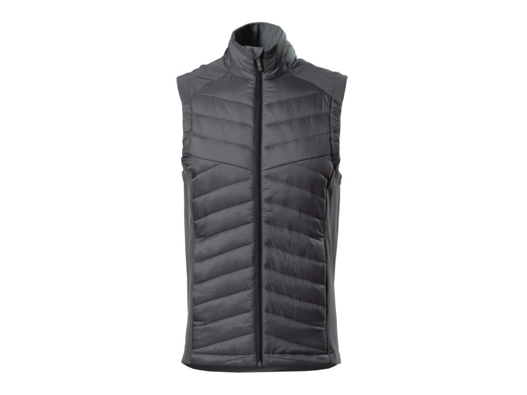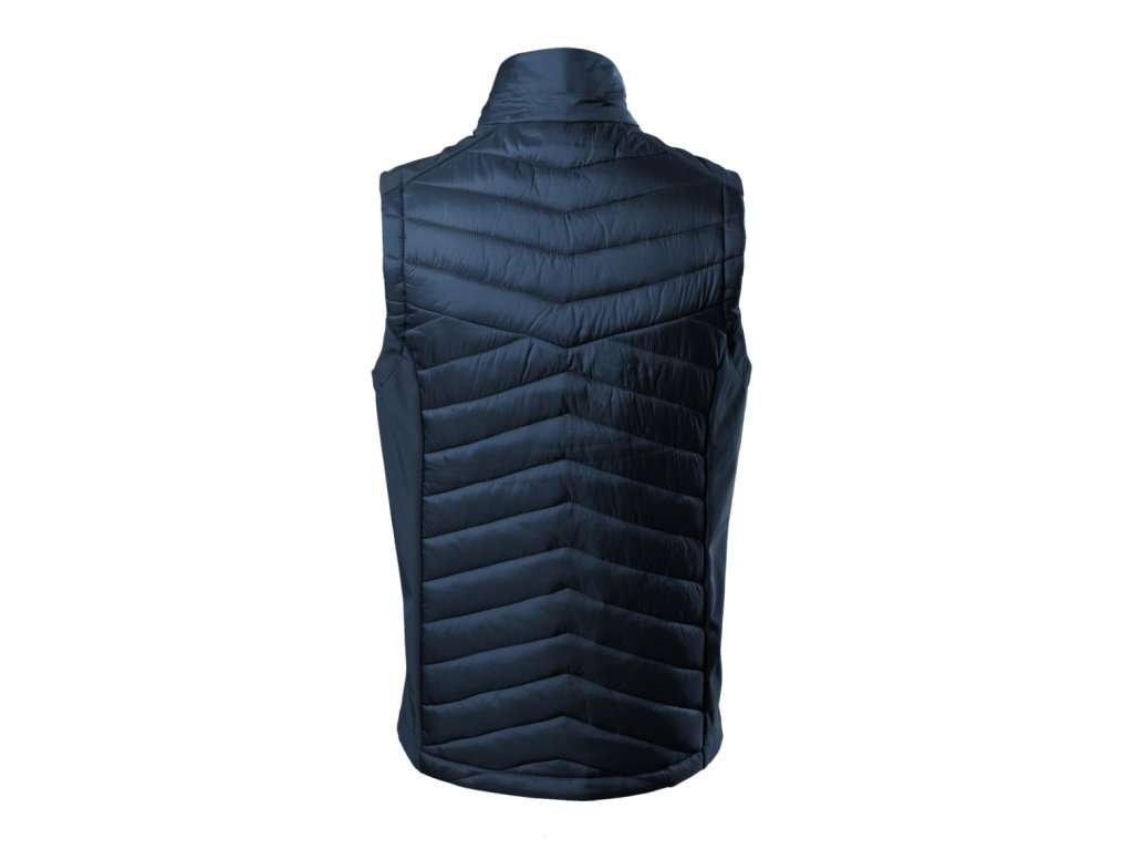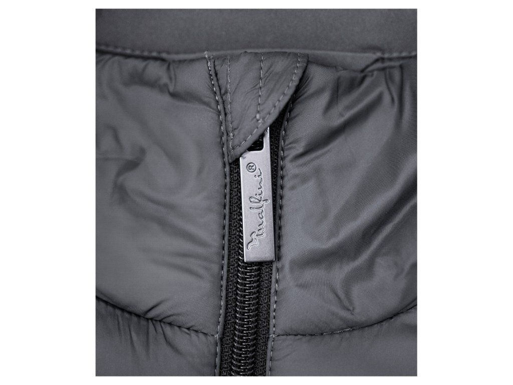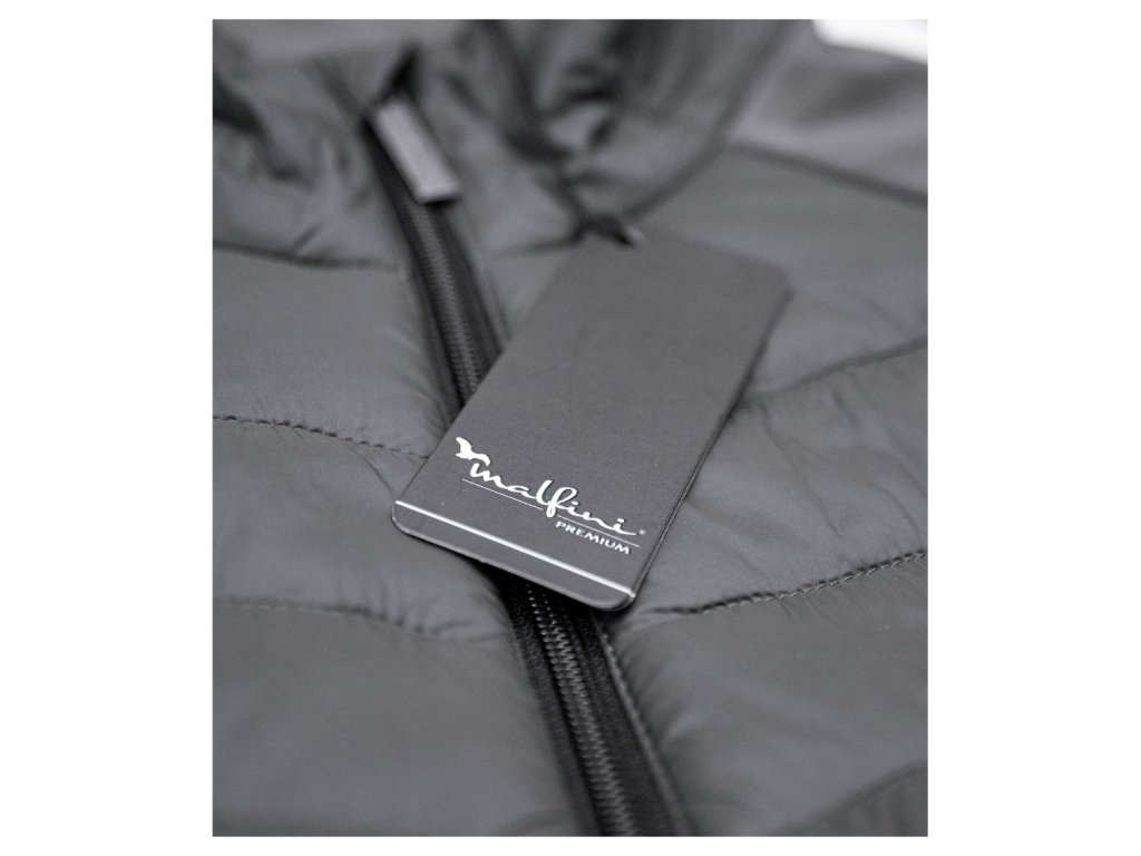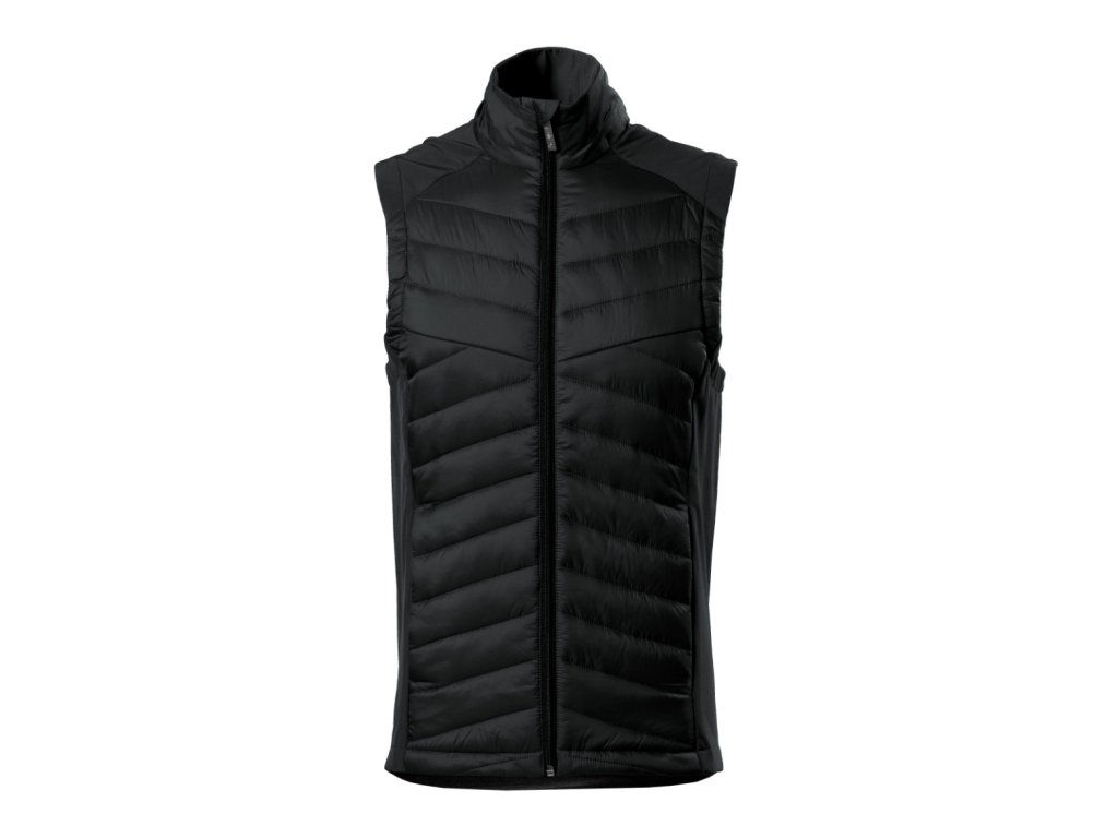 kombinace prošívaného a softshellového materiálu, rovný střih s bočními díly, celopropínací spirálový zip s krytkou brady, boční kapsy se spirálovým zipem, vnitřní náprsní kapsa na zip, tvarovaný a mírně prodloužený zadní díl , vstup pro branding v podšívce zadního dílu