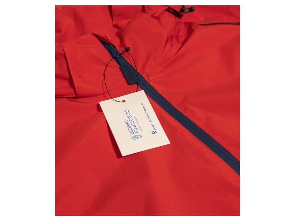 lehký voděodolný materiál s membránou, úprava BIONIC FINISH® ECO zabraňující průniku vody, rovný střih s bočními díly, voděodolný zip zakončený krytkou brady, odnímatelná kapuce na stažení šňůrkou, lemy rukávů nastavitelné suchým zipem, boční kapsy s reverzním spirálovým zipem, vnitřní náprsní kapsa na suchý zip, podlepené švy, vstup pro branding v bočním švu podšívky, tvarovaný a mírně prodloužený zadní díl , dolní okraj stažený pruženkou v boční části, odvětrávání v zadní části , reflexní prvkyDoplňkové parametry