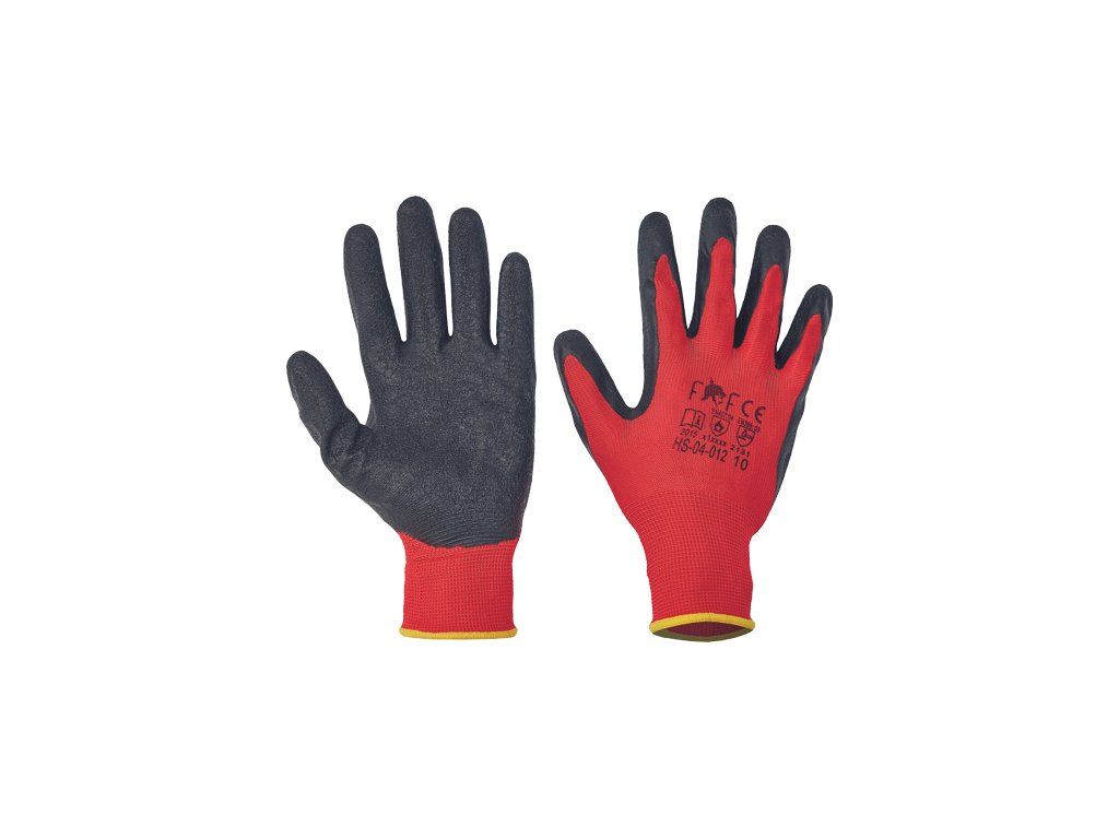 • pletené bezešvé polyesterové rukavice • máčené v černém latexu na dlani a na prstech • pružná manžeta