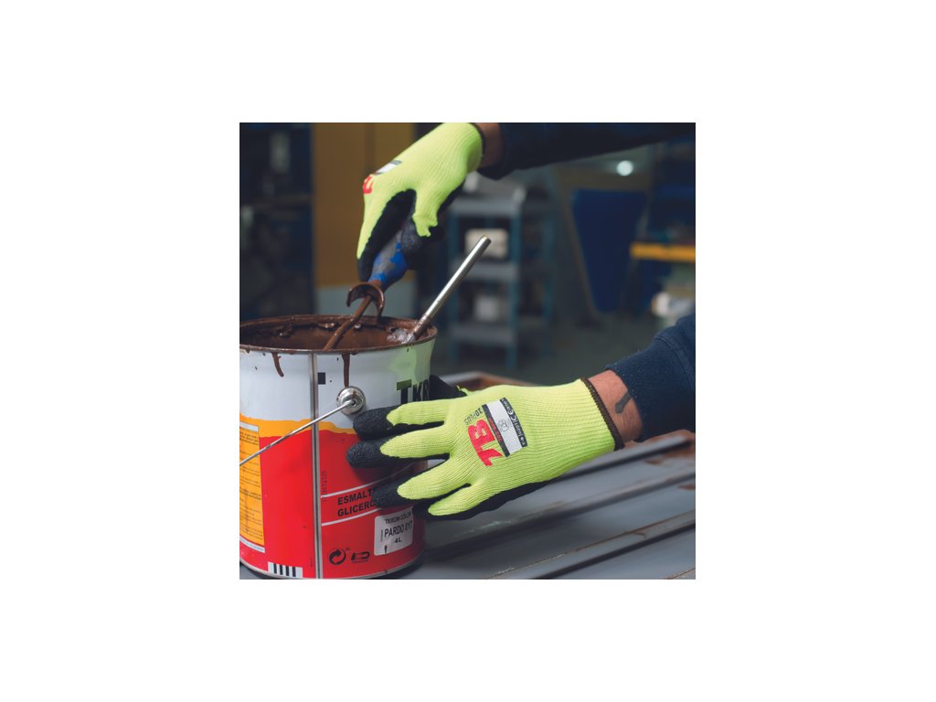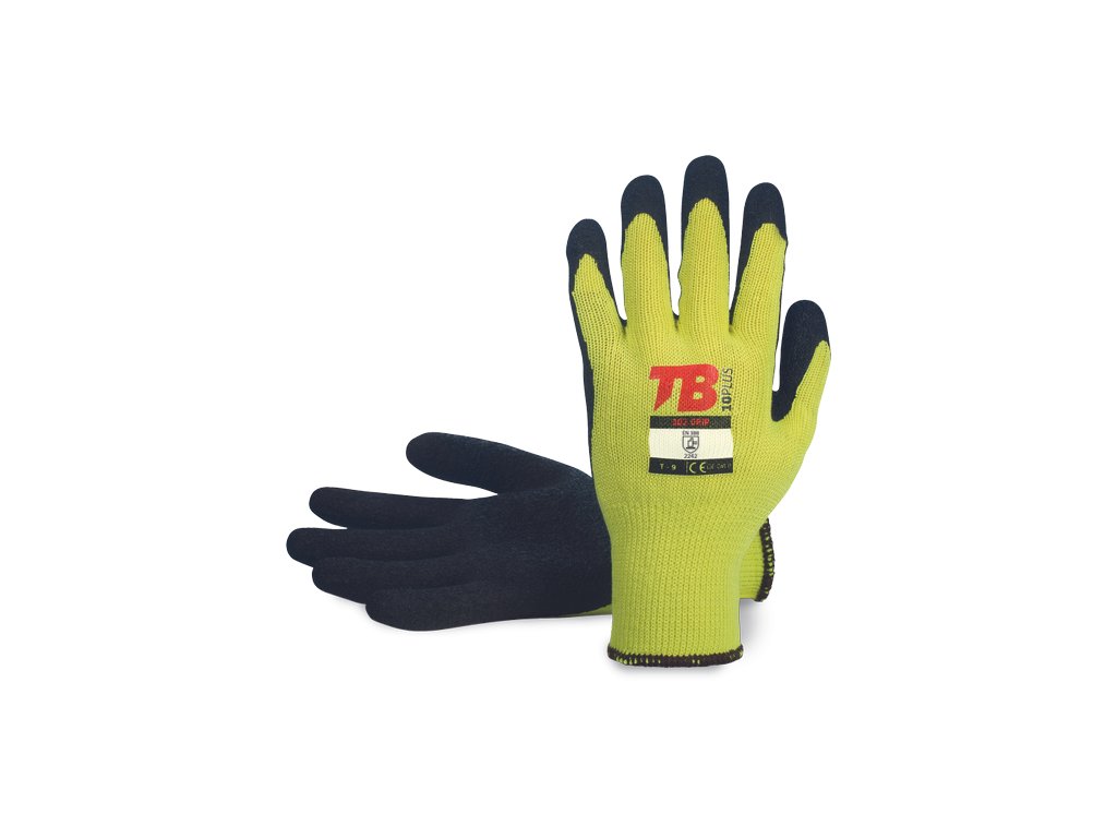 • bezešvé reflexní žluté polyesterové rukavice máčené v černém latexu na dlani a prstech • pletená manžeta • hustota úpletu 10 GG