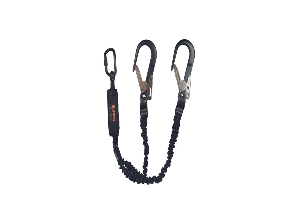 dvojitý tlumič pádu STRETX se spojovacím prostředkem dvou elastických 43 mm širokých popruhů, na konci popruhů jsou hliníkové háky FS821 (otevření 60 mm, 25 kN), na tlumiči hliníková karabina FS820; oblast použití: telekomunikace, větrné elektrárny, střechy, mobilní plošiny, ocelové sloupy, ocelové konstrukce, lešení; nosnost 100 kg; délka systému: 1,5 m a 2 m; hmotnost podle délky 1,68 kg nebo 1,72 kg; splňuje normy EN 354:2010 a EN 355:2002