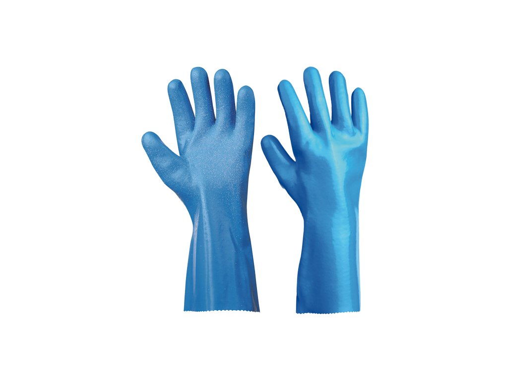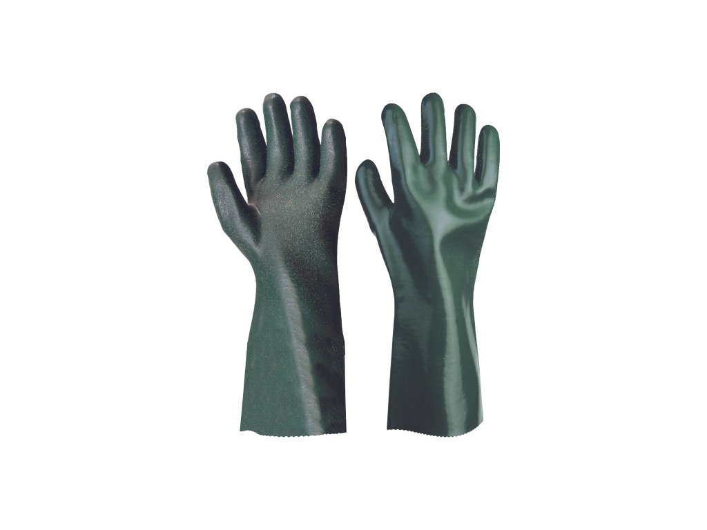 • šitý bavlněný úplet máčený v PVC s nitrilem • ochrana proti mechanickému a chemickému riziku • délka 35cm • (AS) s posypem v dlani