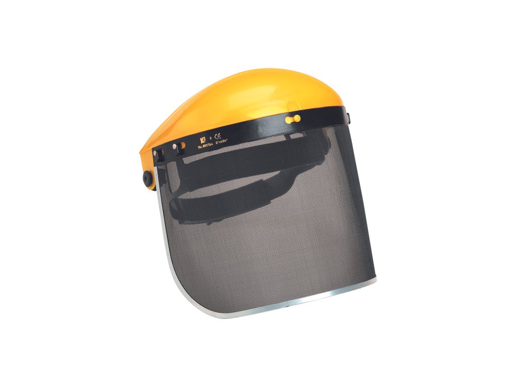 drátěný celoobličejový štít s náhlavním držákem; rozměr 20 cm x 39 cm x 0,1 cm; splňuje normu EN 1731