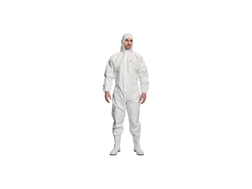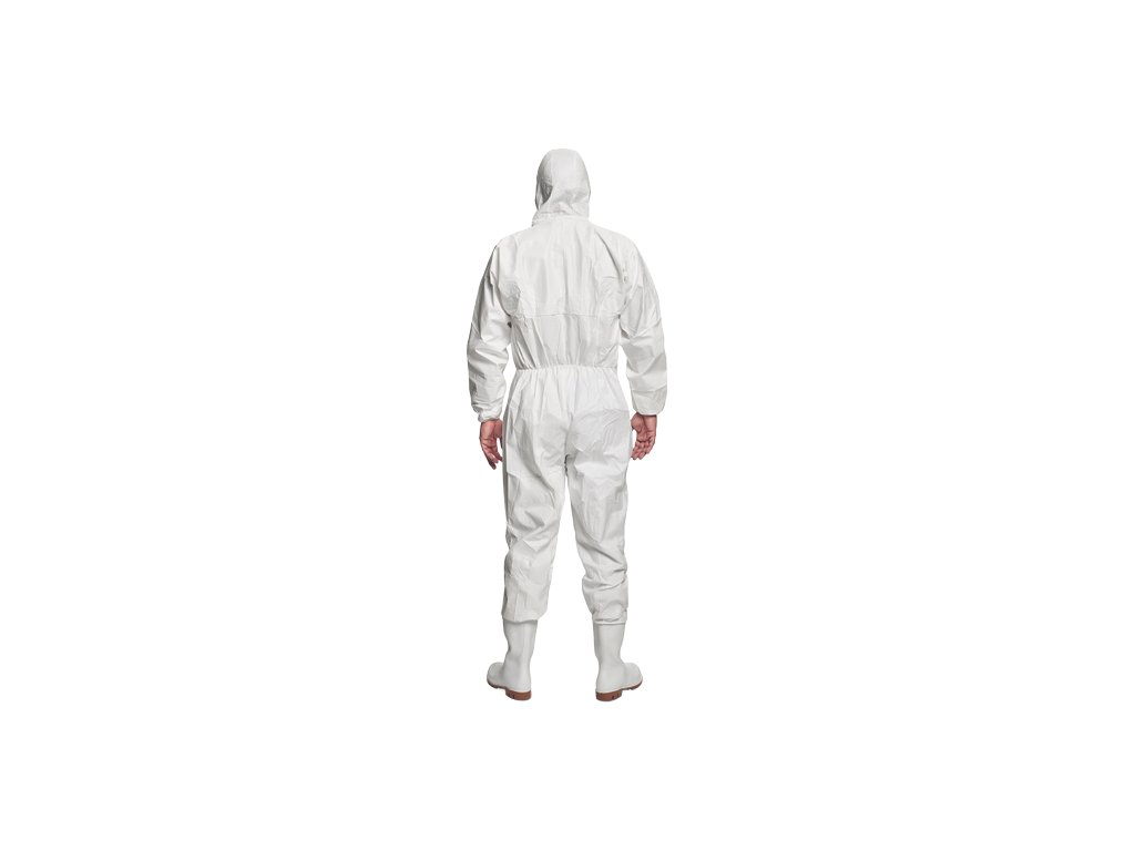 • ochranná antistatická jednorázová kombinéza s kapucí, mikroporézní paropropustnou vrstvou • zip krytý klopou a gumičkou stahovatelnými rukávy a nohavicemi • chrání proti nebezpečným mirkoorganizmům • v ochraně proti postřiku kapalnými chemikáliemi patří do kategorie CE III • v ochraně proti průniku pevných částic a ochraně proti aerosolům typu 5B • v ochraně proti postřiku kapalnými chemikáliemi typu 6B • v ochraně proti kontaminaci radioaktivními částicemi do kategorie Class 1