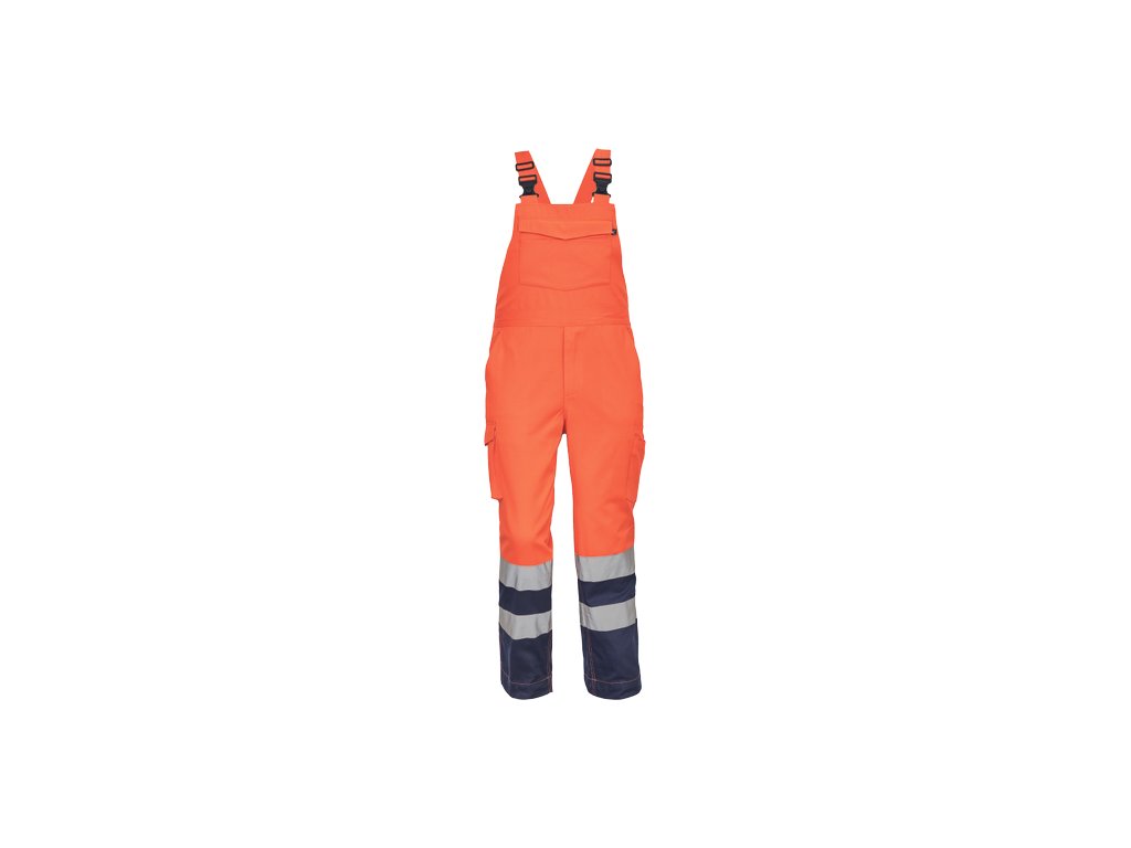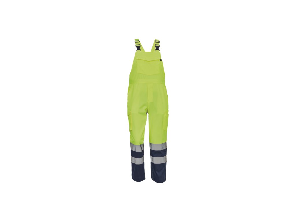 • pánské lehké HI-VIS pracovní kalhoty s laclem a reflexními pruhy na nohavicích, elastický pas • 2 boční kapsy, 1 kapsička na mince • 2 multifunkční stehenní kapsy, 2 zadní kapsy • 1 velká multifunkční náprsní kapsa • elastické šle se zapínáním na sponu • nastavitelná délka nohavic