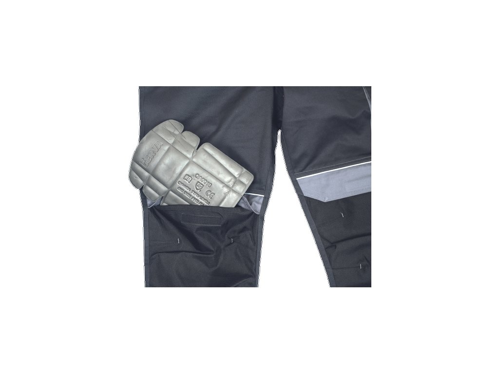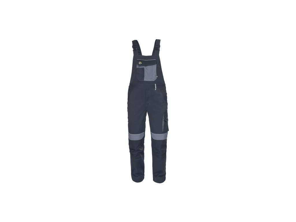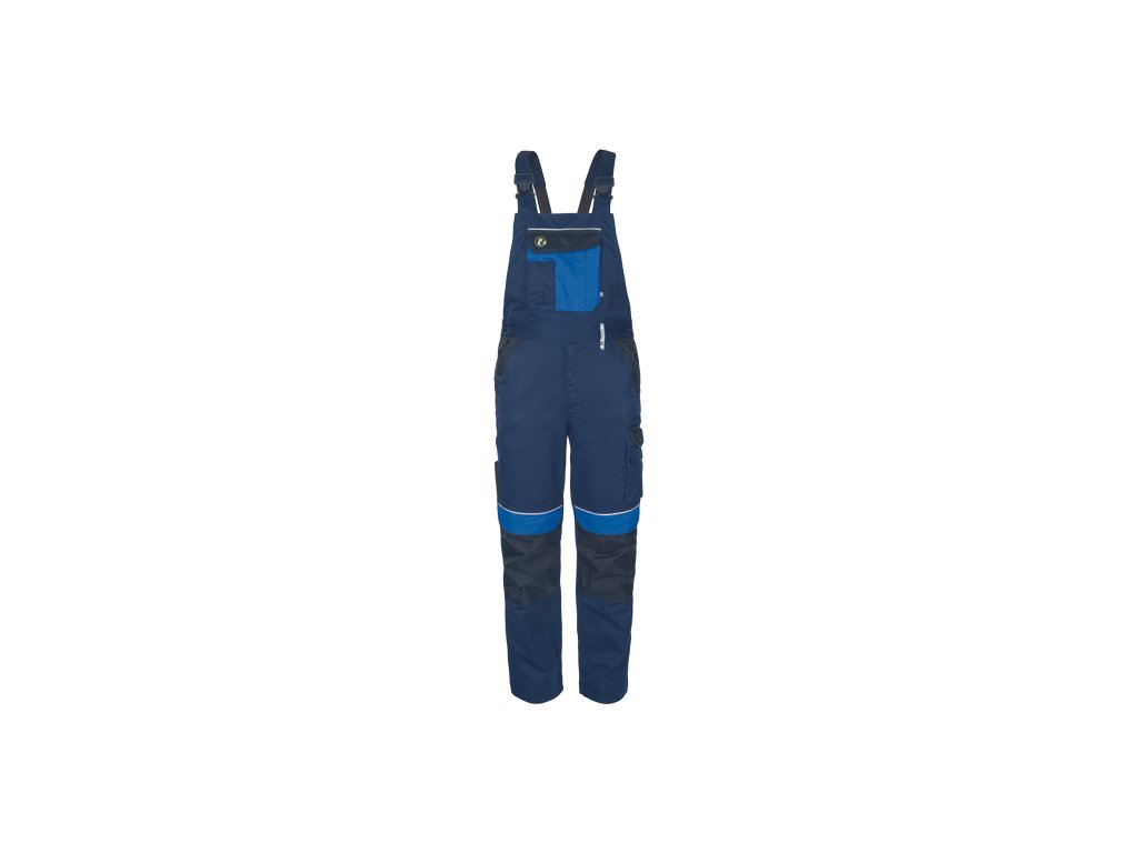 • pánské pracovní laclové kalhoty s elastickým pasem • 2 přední kapsy • 1 stehenní kapsa • 1 velká náprsní kapsa se zapínáním na suchý zip • 2 zadní kapsy se zapínáním na suchý zip • zesílená oblast kolen s možností vložení chráničů kolen • reflexní prvky • nastavitelná délka nohavic