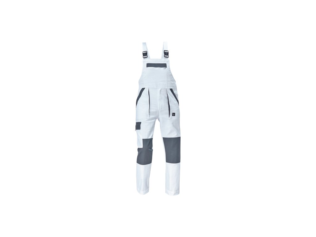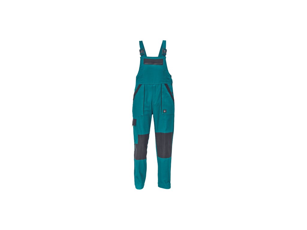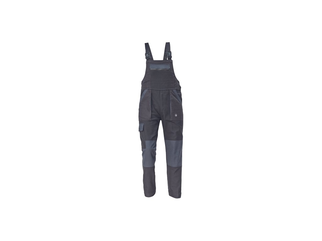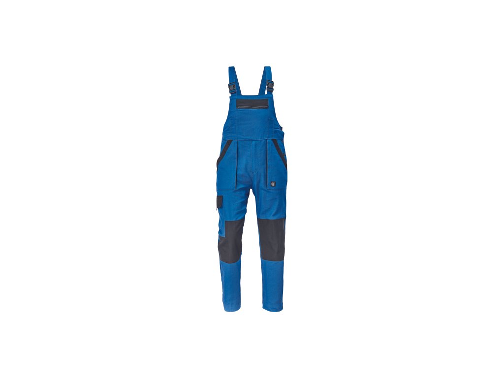 • pánské pracovní kalhoty s laclem a elastickým pasem • široké šle s plastovými sponami • 2 přední kapsy, 1 stehenní kapsa • 1 velká náprsní kapsa, 2 zadní kapsy • zesílená oblast kolen • nastavitelná délka nohavic