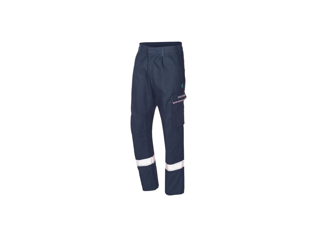 • pánské kalhoty s elastickým pasem • výborná ochrana proti teplu a plameni a tepelným účinkům elektrického oblouku • poklopec na zip • 2 postranní kapsy • 1 zadní kapsa se zapínáním na druk • 1 stehenní kapsa s klopou • 1 malá kapsa na nářadí s klopou • možnost vkládání nákoleníků • nehořlavé 5 cm reflexní pruhy