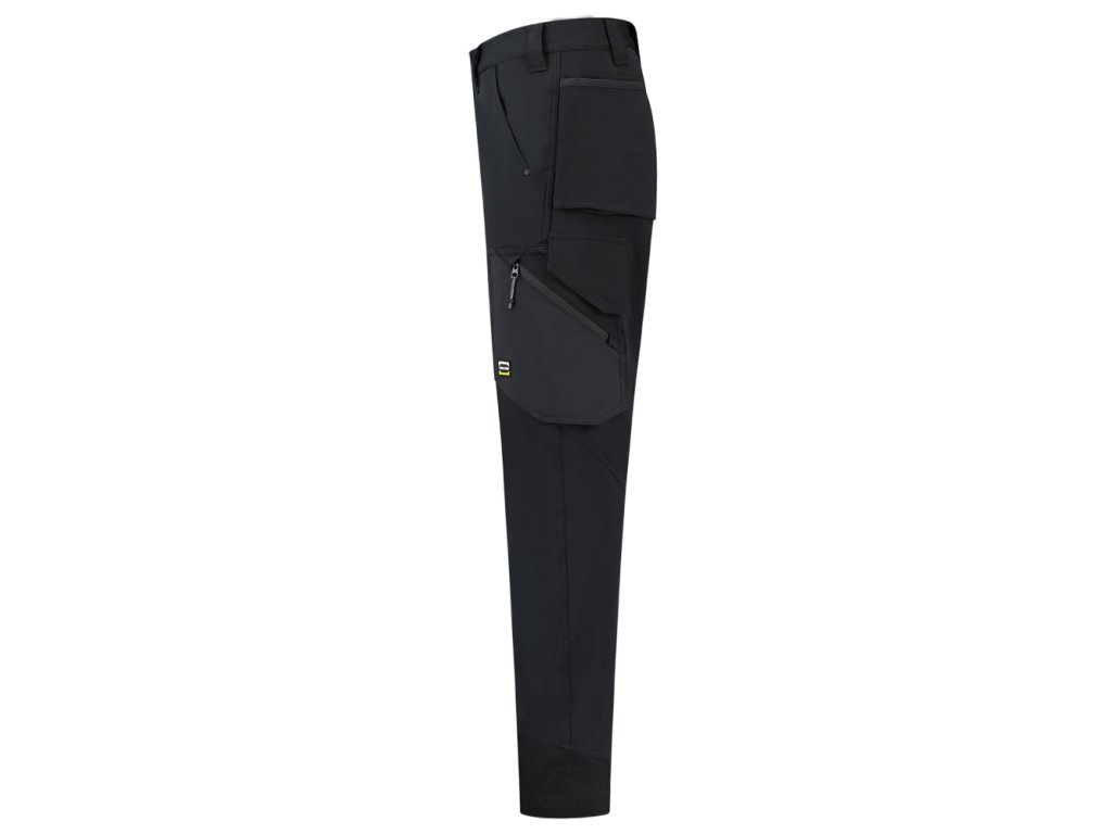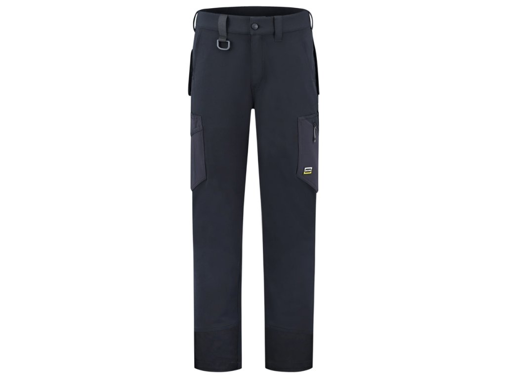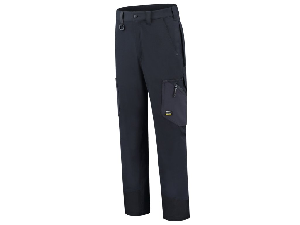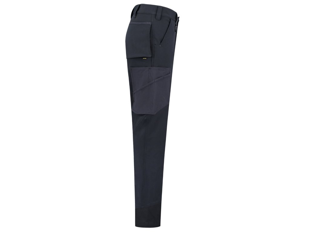 strečový materiál pružný do 4 stran, elastický pasový límec, tvarovaný střih, trojité švy pro vyšší pevnost rozkroku, prodyšný materiál v oblasti kolenní jamky, CORDURA® na konci nohavic a stehenních kapsách, multifunkční kapsy, stehenní kapsa uvnitř s poutkem na ID, 2 zadní kapsy, jedna s klopou na suchý zip, reflexní potisk na zadním díle a táhle zipu, zvětšení švové záložky pro možnost individuálného prodloužení o max 6 cm, "D" poutko, poutko na kladivo, reflexní prvky, Tricorp číslo produktu: 502027