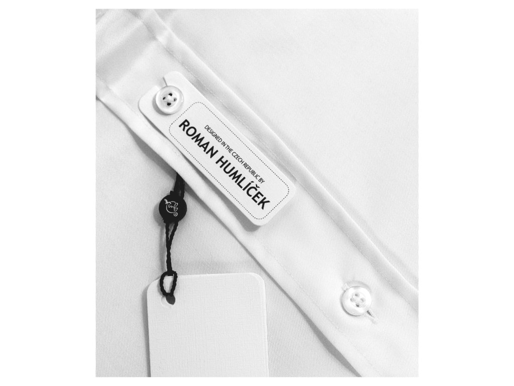 navrženo předním českým krejčím Romanem Humlíčkem, příze z extra dlouhých vláken, projmutý střih s bočními švy, dvojité sedlo a záševky na zadním dílu, pasové záševky na předním dílu, dvoudílný košilový límec, přední kraje začištěny légou, dlouhé rukávy s kulatou manžetou na 2 knoflíčky, perleťové knoflíčky v barvě 00 (2 náhradní navíc), tvarovaný dolní krajDoplňkové parametry