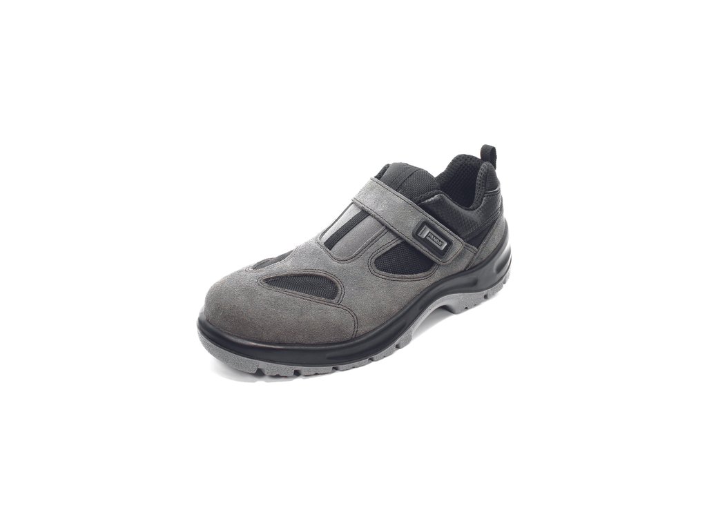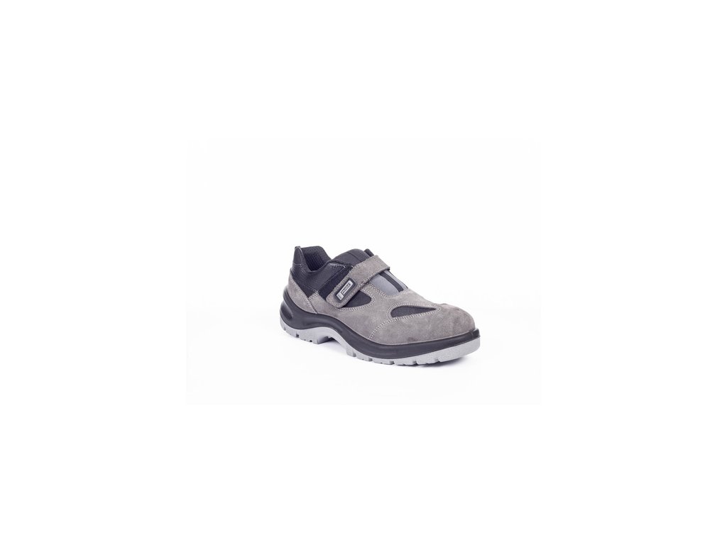 Bezpečnostní sandál s kompozitní tužinkou. PU/PU podrážka rezistentní olejům, absorpcí energie v patě, vysoká odolnost vůči uklouznutí. Svršek z broušené kůže.