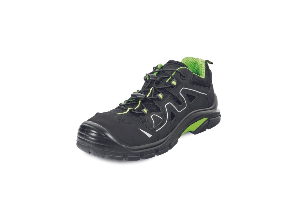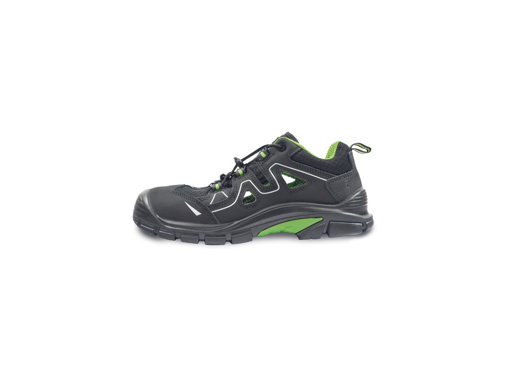 Moderní bezpečnostní sandály s kompozitní stélkou proti propichu a kompozitní tužinkou ve špici, která chrání před stlačením silou do 15 kN nebo pádem břemena o váze do 20kg z výšky 1m. Antistatická podešev vyrobena z kombinaci polyuretanu a velice odolné gumy garantuje nejenom komfort, ale i bezpečí díky protiskluzným vlastnostem podrážky, která je navíc rezistentní olejům a oděru. Svršek obuvi je vyrobený z přírodní kůže „NUBUCK“ a vnitřní podšívka z prodyšného polyesteru. Uzavíraní pomocí elastických tkaniček umožnuje ideálně přizpůsobit obuv k tvaru nohy. Reflexní prvky garantuji zvýšenou viditelnost uživatele. Tento model je vybaveny komfortní vnitřní stélkou, která díky gelové patě ještě lepe tlumí nárazy a přináší maximální pocit pohodli během práce. Tyhle boty vypadají jako sportovní obuv, ale při tom dokonale ochrání vaší nohy.