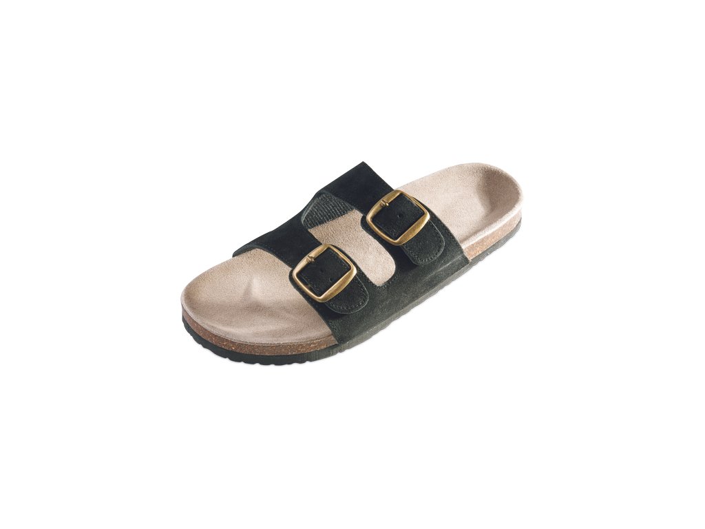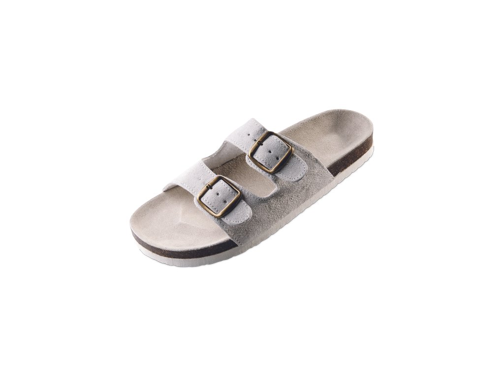Korkové pantofle s podrážkou z pěnové pryže a koženým svrškem.
