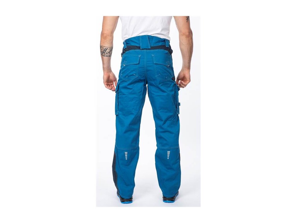 Montérkové kalhoty do pasu VISION jsou designové pracovní kalhoty ze směsového materiálu bavlna/polyester vysoké odolnosti a pohodlného střihu. Disponují zdvojenými partiemi kolen s kapsou pro vložení nákoleníků v případě potřeby. Zdvojený materiál a případné vložení nákoleníků maximalizují ochranu materiálu proti oděru a zároveň minimalizují zátěž pro kolena při práci vkleče nebo jiné pracovní zátěži partií kolen. Na zadním dílu je sedlo a dvě našívané kapsy s patkou, další vrstvené kapsy na nářadí najdete na boční straně stehen. Kalhoty jsou prošívané kontrastní riflovou nití a doplněny originálními stříbrnými reflexními potisky.