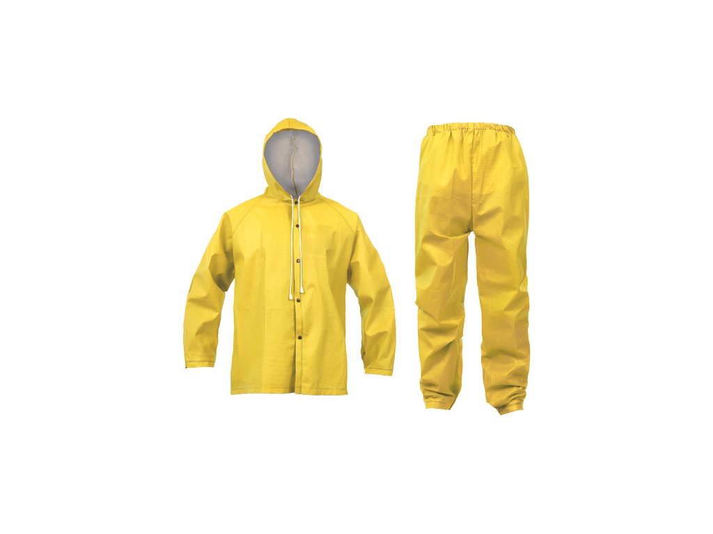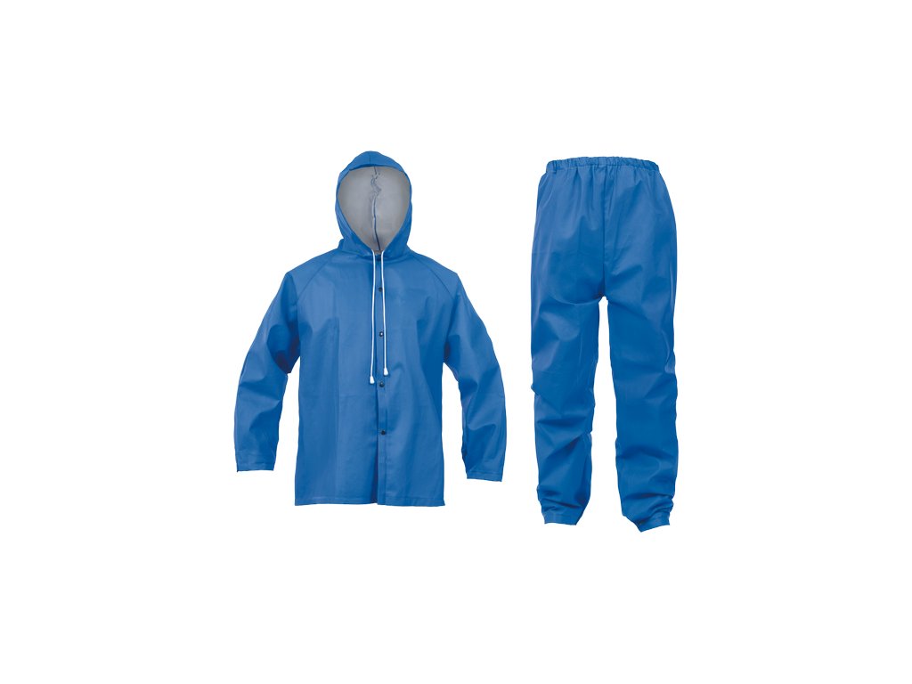 • set nepromokavé bundy s kalhotami • bunda s kapucí a se zapínáním na druky • obvod kapuce je možné upravit pomocí tkanice • ventilace v podpaží • kalhoty s elastickým pasem • manžety rukávů a spodní lem nohavic se zapínáním na druky • zatavené švy • 100% recyklovatelný oděv