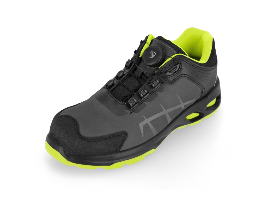 Bezpečnostní obuv NEXO S3L se systémem šněrování SPINPRO. Vyrobeno z nubukové kůže, s ochrannou ocelovou tužinkou a kevlarovou vložkou proti propíchnutí. Podešev z dvojhustotního PU/PU polyuretanu, antistatická, protiskluzová a olejivzdorná. Absorpce energie v oblasti paty. Pohodlná, měkká, flexibilní stélka z pěny z organických vláken s vysokou absorpcí nárazů, prodyšností a vlastnostmi proti pocení. Podšívka z materiálu s hygroskopickými a ventilačními vlastnostmi. Zesílená špička boty zabraňuje oděru a mechanickému poškození. Kategorie S3L SR. Splňuje požadavky normy EN ISO 20345:2022.