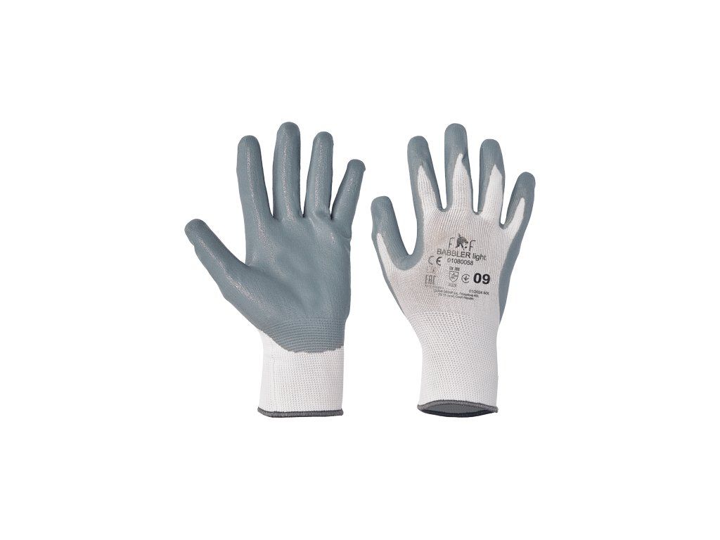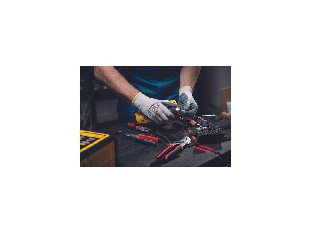 • pletené bezešvé polyesterové rukavice • dlaně máčené v nitrilu