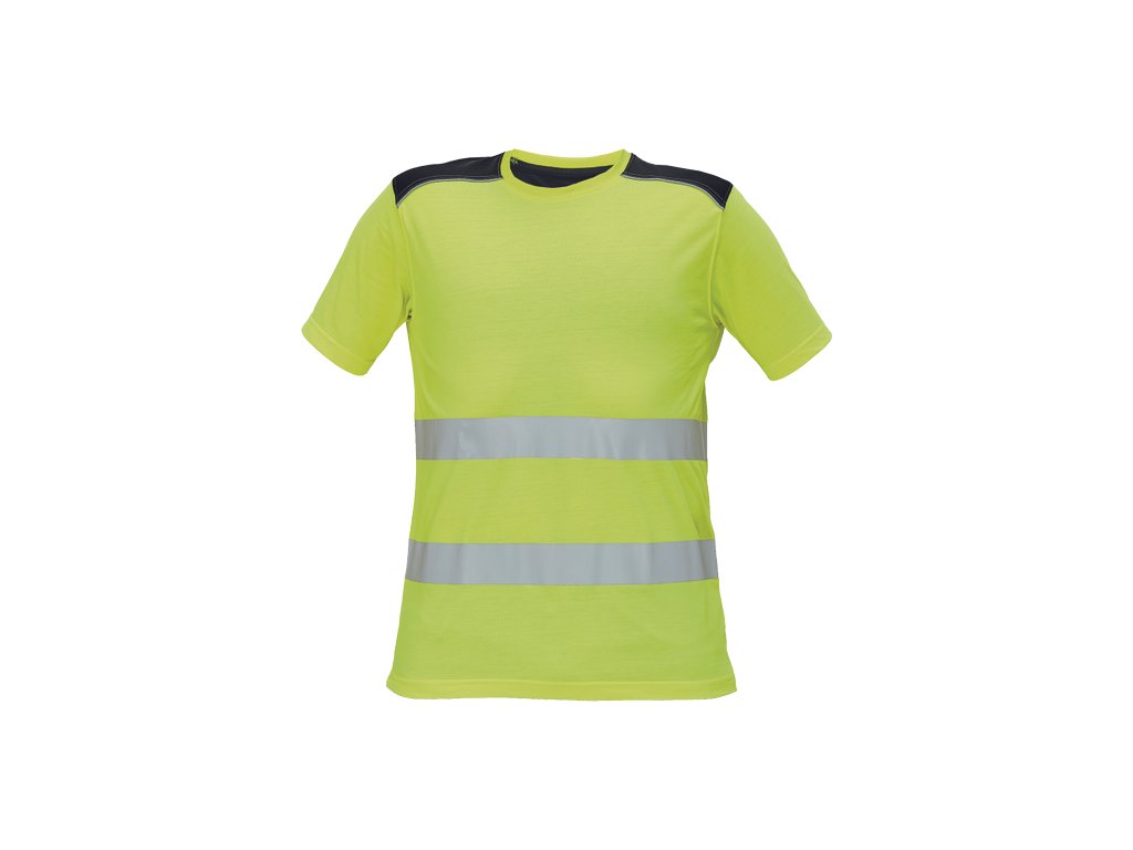 • HI-VIS tričko z lehkého polyesterového úpletu • sedlo v kontrastní černé barvě lemované reflexní paspulkou • 2 reflexní pruhy po obvodu těla • dekorativní prošití