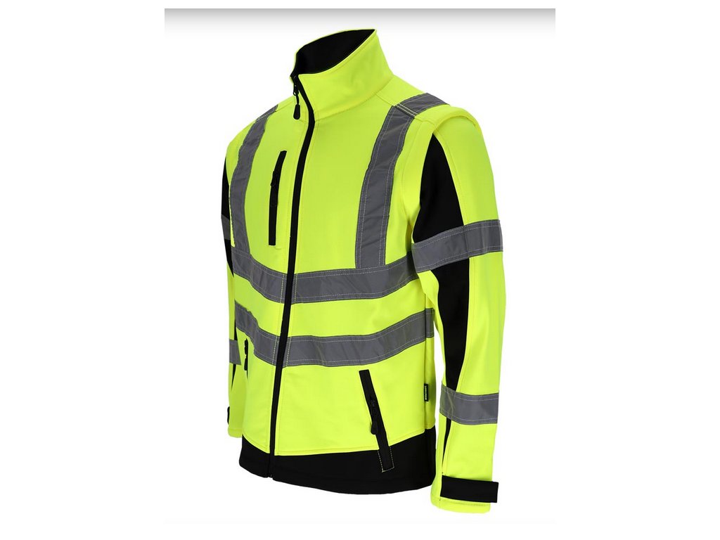 Materiál SOFTSHELL - chrání před větrem a vlhkem a zároveň umožňuje pokožce dýchat. Zapínání na zip. Stojatý límec. Dvě spodní kapsy a jedna náprsní kapsa na zipy. Odnímatelné rukávy na zip, se možností regulace na zápěstí na suchý zip pro nastavení šířky. Fluorescenční tkanina a reflexní pruhy pro zvýšenou viditelnost. Dvouvrstvá softshellová tkanina: 100% polyester, 100% polyesterový fleece Hmotnost 250 g/m²