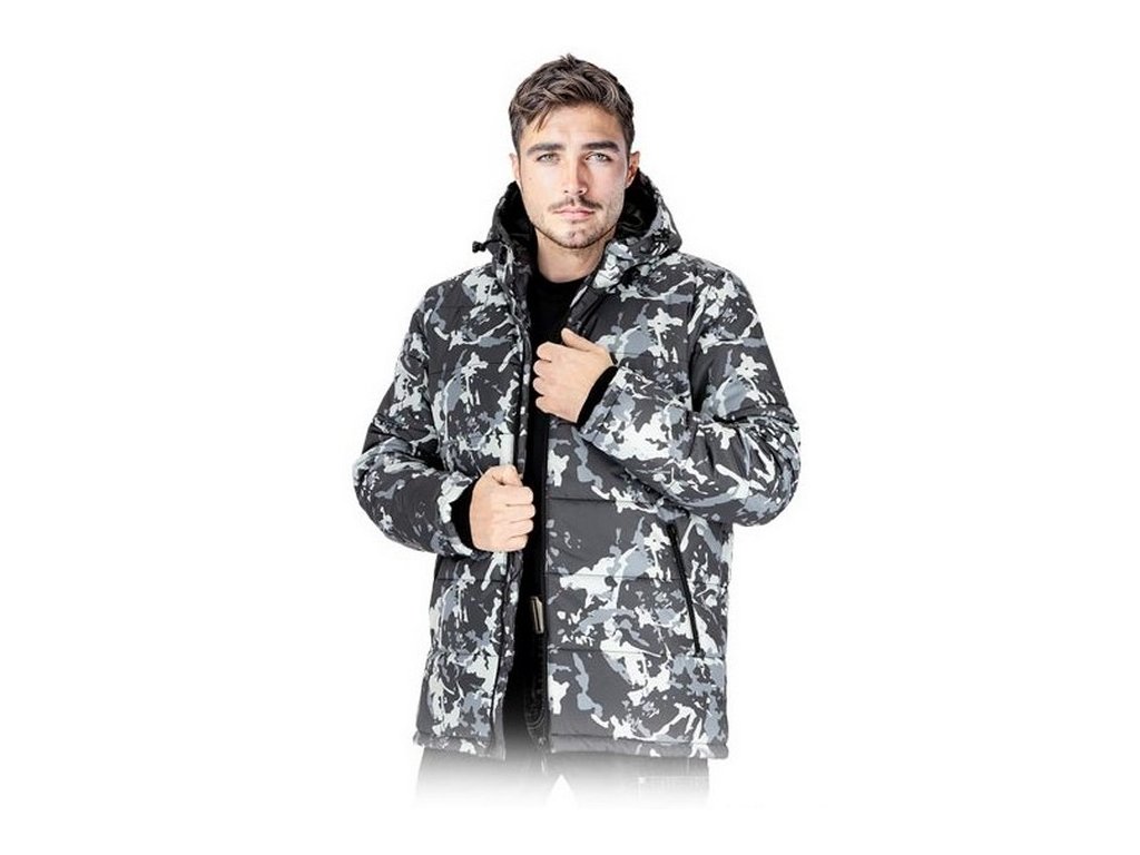 Zimní bunda, kapuce se stahovacími šňůrkami, ve spodní části dvě kapsy na zip, dvojitá vnitřní kapsa, rukávy zakončené manžetami, spodní část bundy lze stáhnout šňůrkami. Měkký a příjemný materiál, částečně dešti odolný.